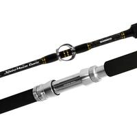 The new Shimano Speedmaster game series range of rods utilizes Shimano's strong and lightweight TC4 blank technology to deliver a dependable tournament game fishing and deep drop line-up. Quality Fuji SiC guides with an AFTCO Roller Tip provides control and preserves the performance of your line during the fight and ensures you keep the upper hand against whatever you may hook. To guarantee your favourite Shimano game reel fits perfectly to the rod, an aluminium Pac Bay reel seat and channel lock butt is used for the ultimate in strength and durability. This is especially important as the strength and rigidity of your outfit will be upheld when under fighting load. Tested on some of Australia’s hardest fighting game fish, the Speedmaster Game series covers 5 models across 15-, 24- and 37kg line classes for trolling and live baiting, including a dedicated 7' 24kg land-based game (LBG) rod and a 5'6" PE 8-10 deep drop rod.