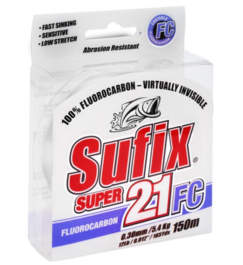 With the NEW INVISILINE and SUPER 21 fluorocarbon lines from Sufix. Anglers now have more control than ever over their angling feats. Available in 30-100m spool lengths in 4lb through 60lb, there’s a Sufix fluorocarbon line for every fishing situation.