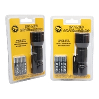 Discover the TT'S UV 21 LED Flashlight, your perfect companion for outdoor adventures. This ultra-bright, compact flashlight is designed for durability and convenience. Featuring a robust full aluminum housing, it's built to withstand the rigors of outdoor use, ensuring reliability in various environments. Equipped with a wrist lanyard, it’s easy to carry and hard to lose. The flashlight boasts a potent 21 x 395-400NM UV light beam, ideal for a range of applications from fishing to night-time navigation. It's conveniently sized at 100mm x 35mm, making it an essential and portable tool for your outdoor kit. Plus, it comes ready to use with 3 x AAA batteries included, so you can start your adventure right away.