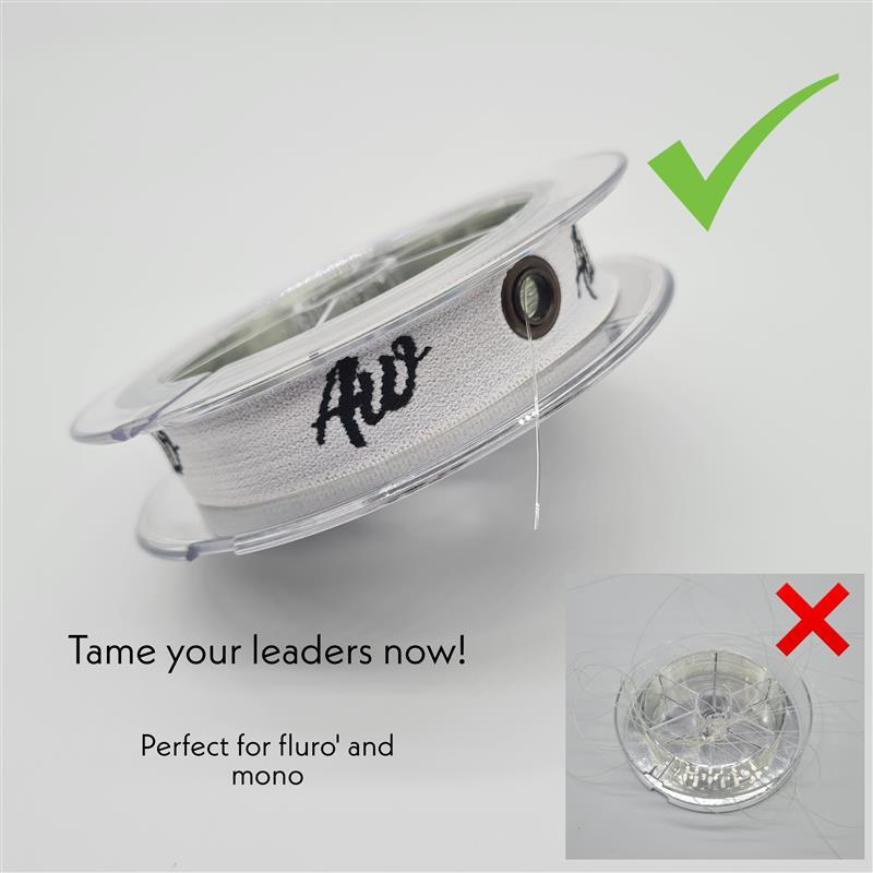 The new Team AW leader spool belts are a must have for every organized angler. Universally designed to stretch over a standard fluorocarbon or monofilament leader spool to prevent unwanted line tangles. Simply stretch the belt over your leader spool and feed your line out the spool belt hole when needed. Now you're ready to fish.  Never waste your leaders again!