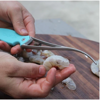 Introducing the Frogmore Prawn cleaner. This first-of-its-kind prawn tool that allows you to peel, devein, and butterfly prawns in one single smooth motion. Elegantly designed and easy to use, it gives you a perfect prawn every time. Designed for use with green prawns.
