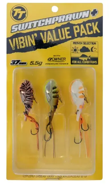 Built for anglers who love the vibration bite, the TT Switchprawn+ Lure Value Pack 37mm brings together three proven colours in a compact, prawn-shaped blade designed to fire up estuary and freshwater predators. At 37 mm and 5.5 g, these lures pack serious vibration, tight flash, and subtle lifelike action — perfect for bream, flathead, silver trevally, bass and more.