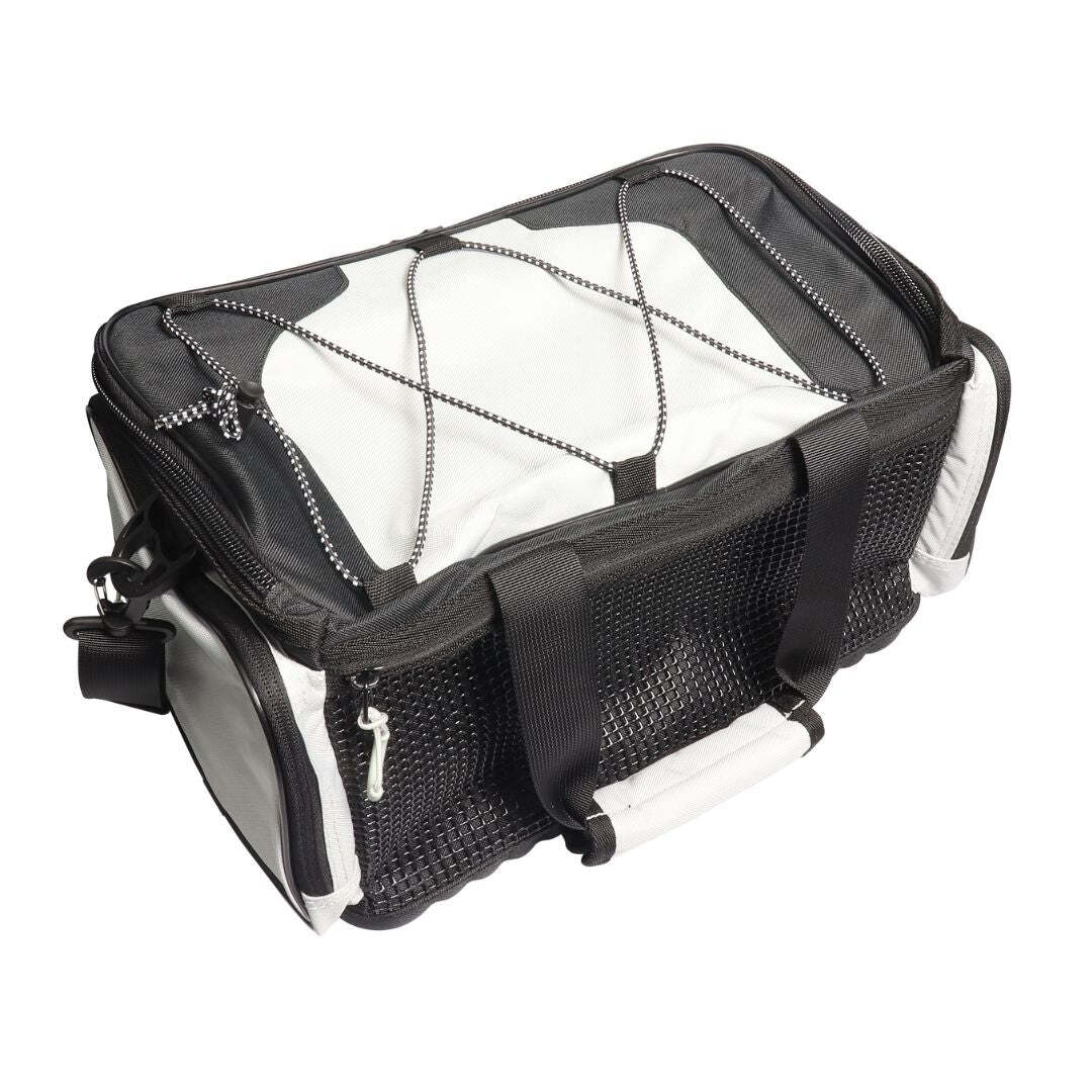 - Elastic bungee strap for securing extra items on top of the bag