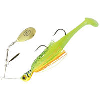 Pre-rigged with a custom TT Enforcer PVC soft plastic trailer, this spinnerbait is equipped with a chemically sharpened Mustad main hook and a TT custom stinger for solid hookups. With a dozen colour options—including three signature colours by freshwater fishing expert Lubin Pfeiffer (Carp, Fire Tiger, and Pearl)—the Tornado+ ensures you have the right presentation for any condition. Whether you’re targeting Murray cod, barramundi, or golden perch, the TT Tornado+ Double Colorado Rigged Lure is built to withstand the toughest challenges in freshwater fishing.