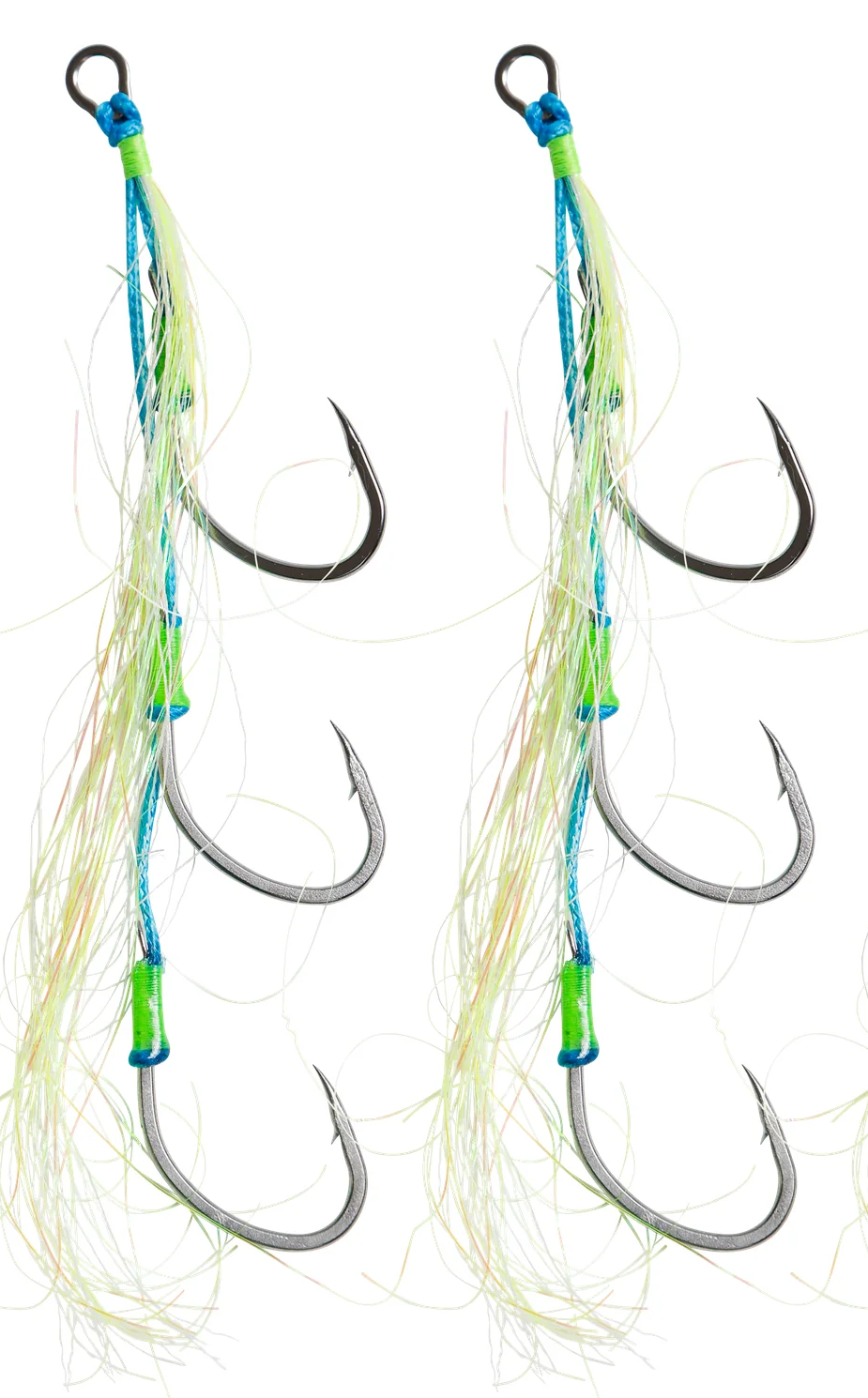 To ensure that your catch is hooked and remains secure, the hooks come with a Fluorocarbon Core PE Assist Cord, adding a new dimension to your fishing experience.