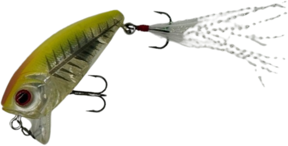 • Feathered rear treble hook – Adds visual attraction on twitch or pause